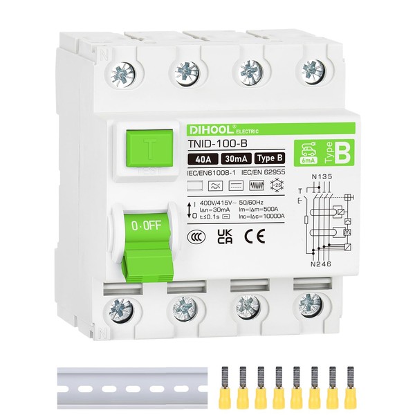 DIHOOL RCD Type B FI Circuit Breaker 40A 30mA 4-Pin DC 6MA Electric Vehicle Charger