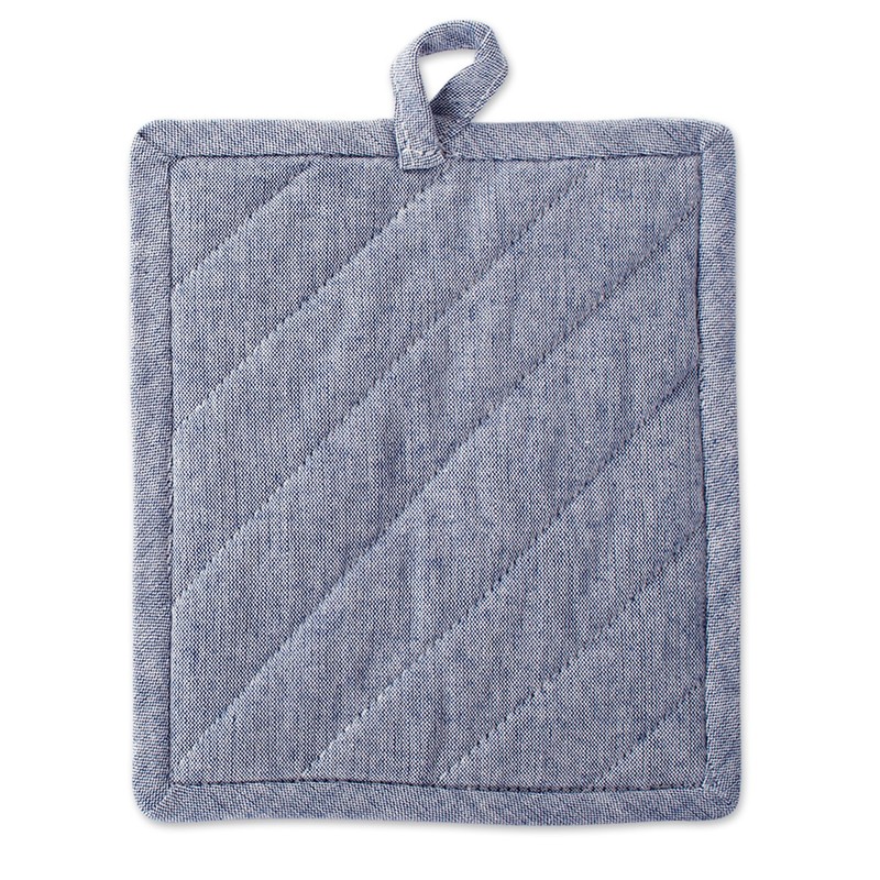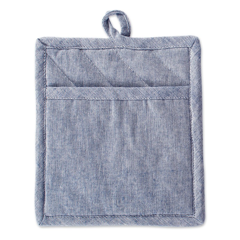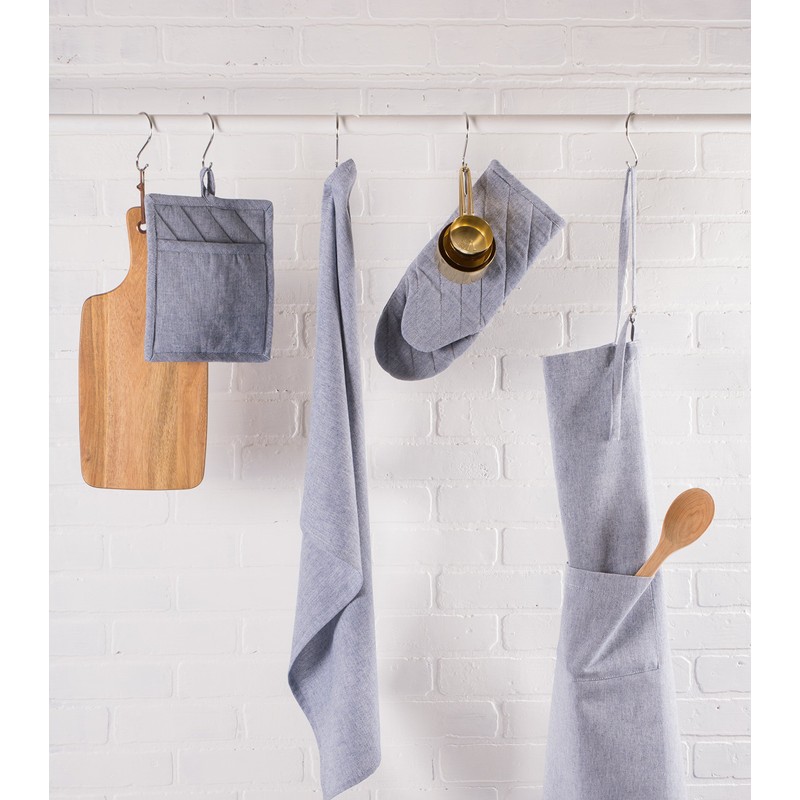 DII 100% Cotton Solid Chambray Kitchen Set, Potholders, Blue, 2 Piece