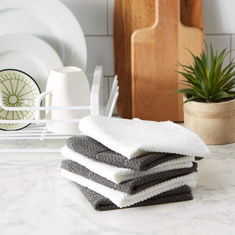 DII Basic Chef Collection, Juego de Toallas de Cocina de Rizo Surtido, Juego de paños de Cocina, Gris Mineral, 6 Piezas