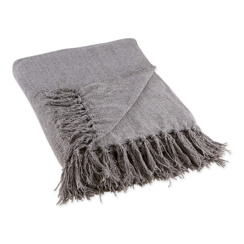 DII Chenille Throw Collection Solid Fringed, 50x60, Gray
