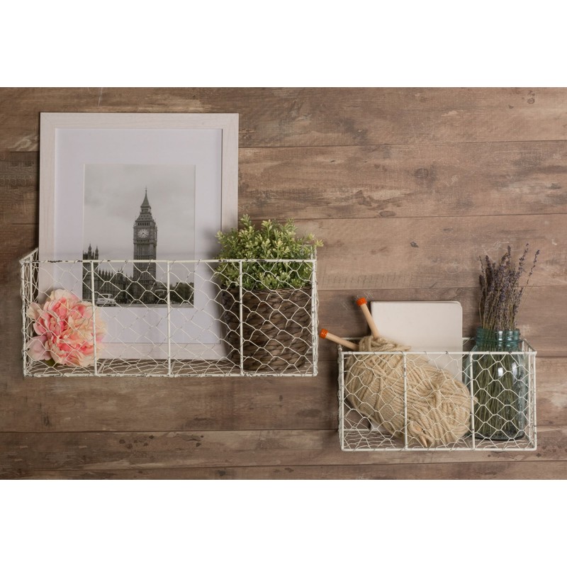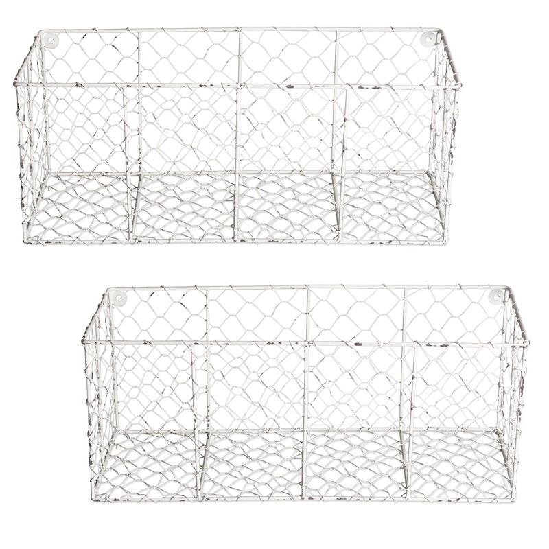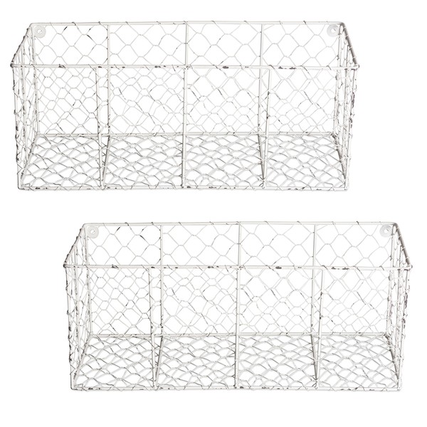 DII Chicken Wire Collection Farmhouse Vintage Wall Baskets, Medium Basket, White