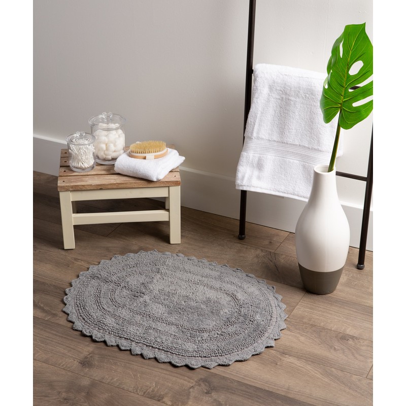 - STYLISH CROCHET BATH MAT: This Oval 100% cotton Bath Mat measures 21x34" and is designed to sit alongside your tub, shower, toilet, sink or vanity and provide a comfortable, warm, dry spot for you to stand
