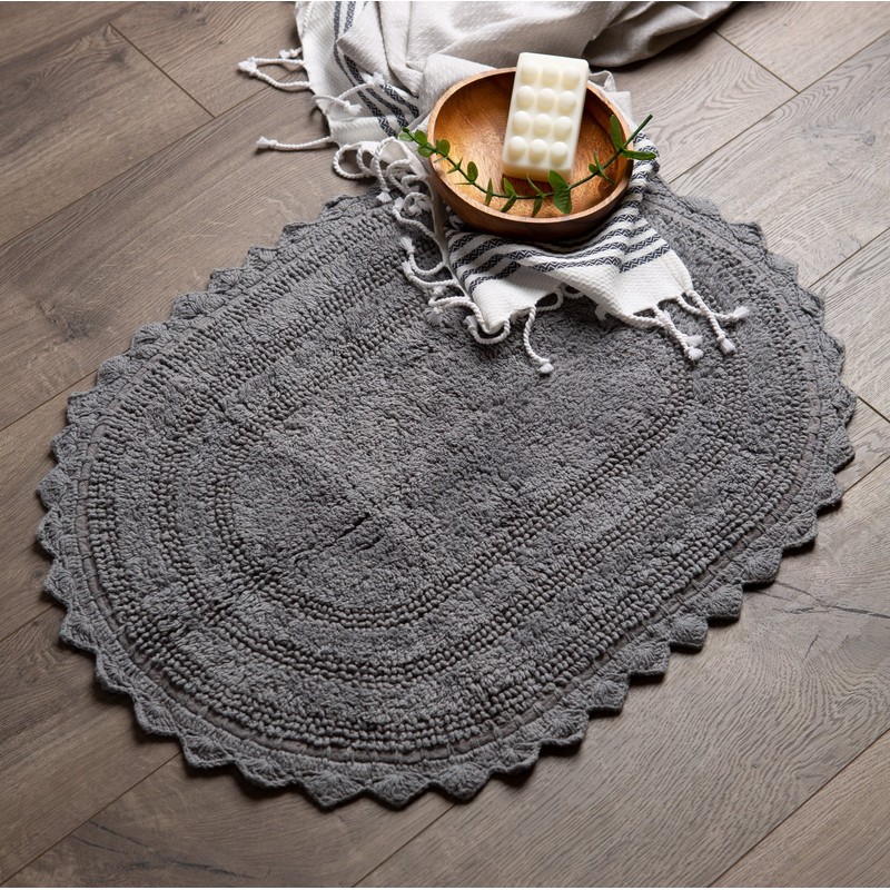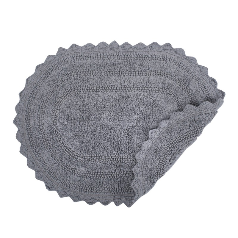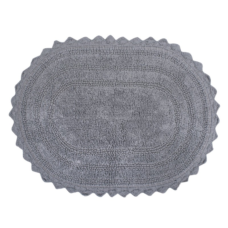 DII Crochet Collection Reversible Bath Mat, Large Oval, 21x34, Gray