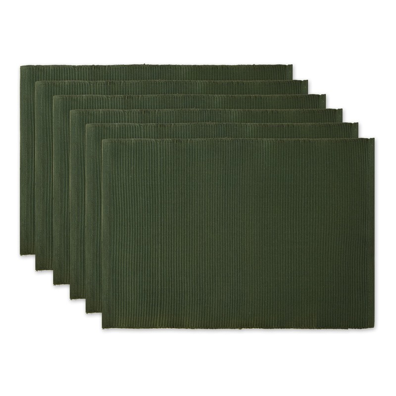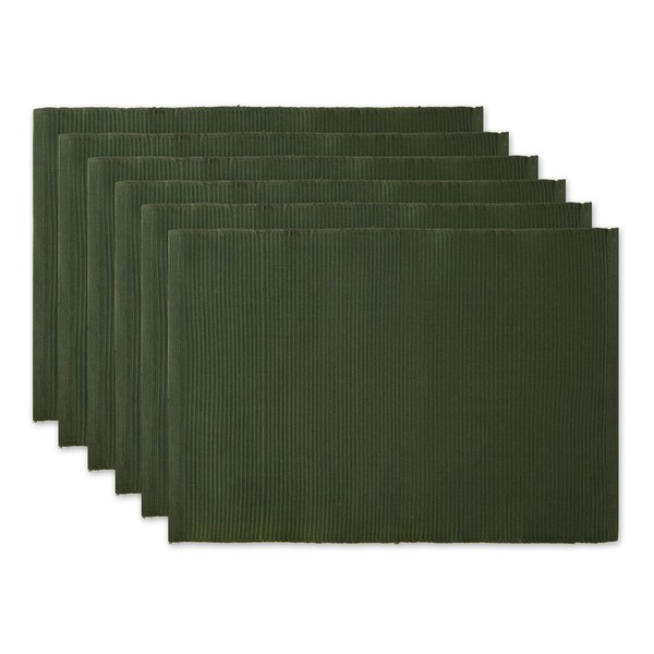 DII DII Basic Everyday Ribbed Tabletop 100% Cotton, Placemat Set, 13x19, Dark Green, 6 Piece