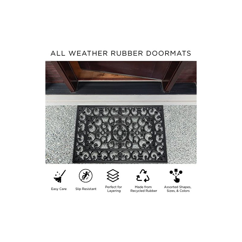 - SIZE: Doormat measures 24x36", 100% recycled rubber material with classic wrought iron design offers a decorative look with unique features