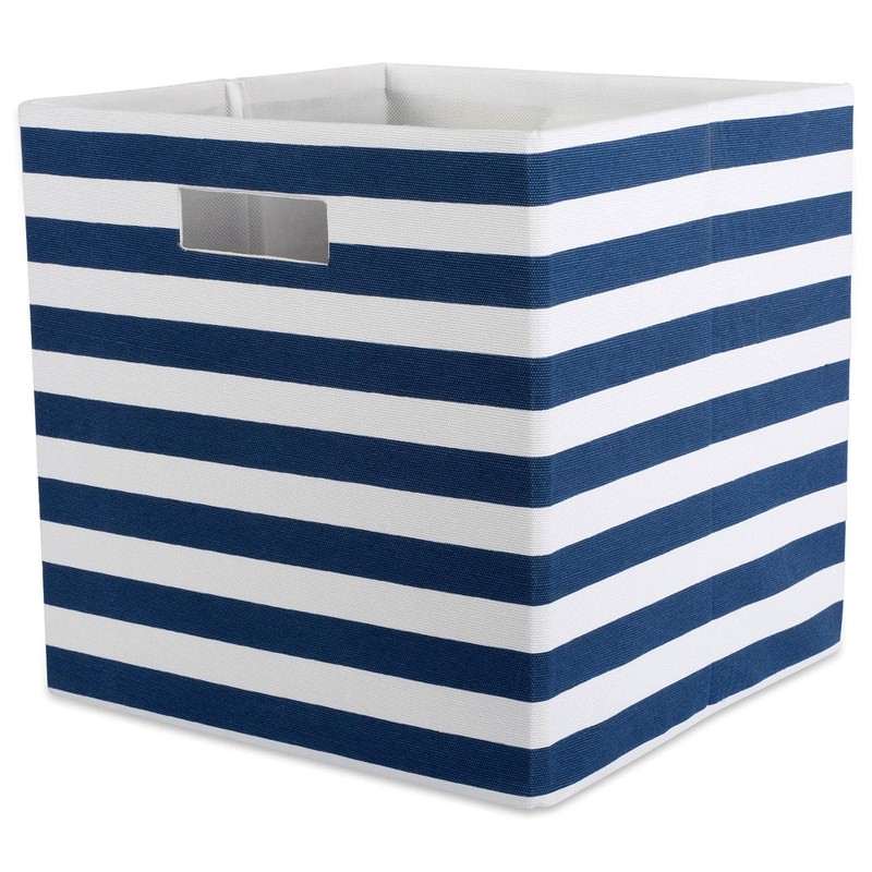 DII Foldable Fabric Storage Container for Nurseries, Offices, Closets, Home Décor, Cube Organizer & Everyday Use, 11 x 11 x 11, Nautical Blue Stripe