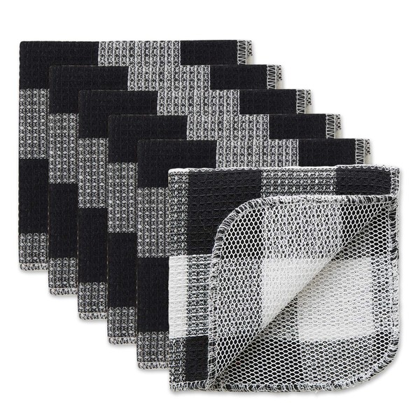 DII Scrubber Dishcloths Collection Windowpane Dishrag Set, 12x12, Black Buffalo Check, 6 Piece