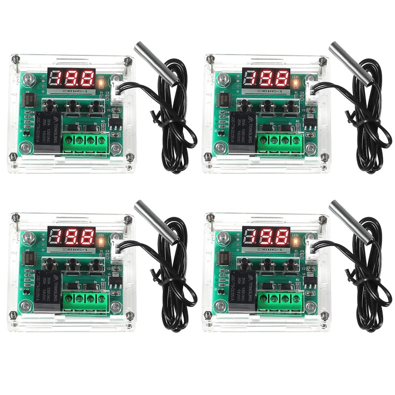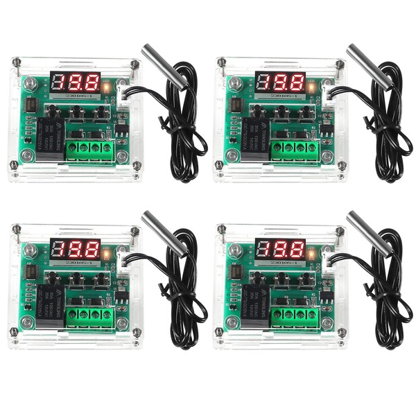 Diitao 4PCS W1209 Temperature Controller Module,LED Display Digital Thermostat Module with Case DC 12V Electronic Temp Control Switch Waterproof NTC Probe -50-110 Degree C (4pcs Red)