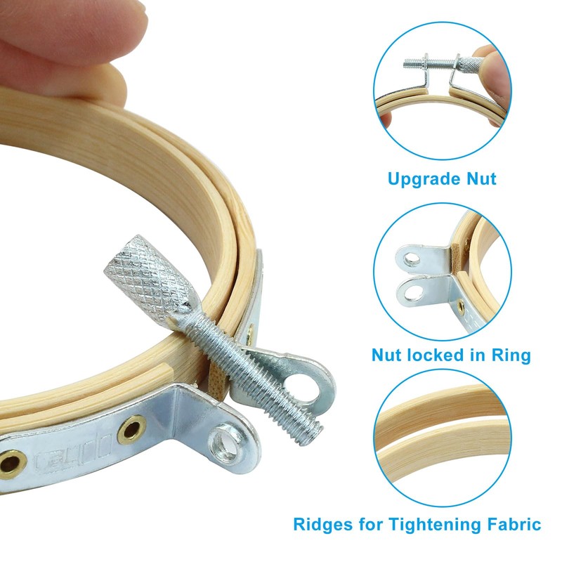 - Excellent Grip: With their unique double-layer design and anti-slip patterns, our bamboo embroidery hoops provide excellent grip. The stainless steel screws ensure firm clamping without any slippage.