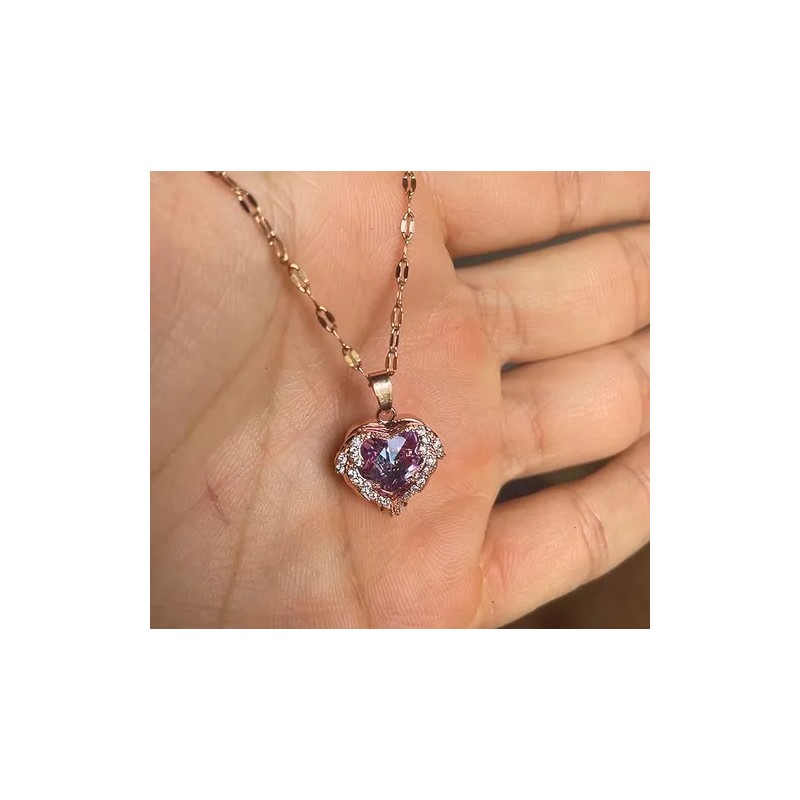 Dijes Para Mujer Collar Corazón cadena chapado en oro rosa 18k zirconia cúbica mujeres