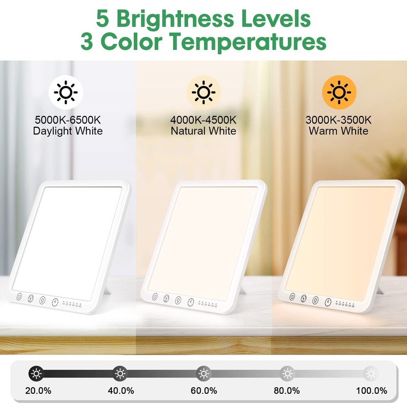 - 5 Adjustable Brightness - Sun lamp offer 5 brightness levels (2o.o%-1oo.o%) for maximum comfort and customization without hurting the eyes.