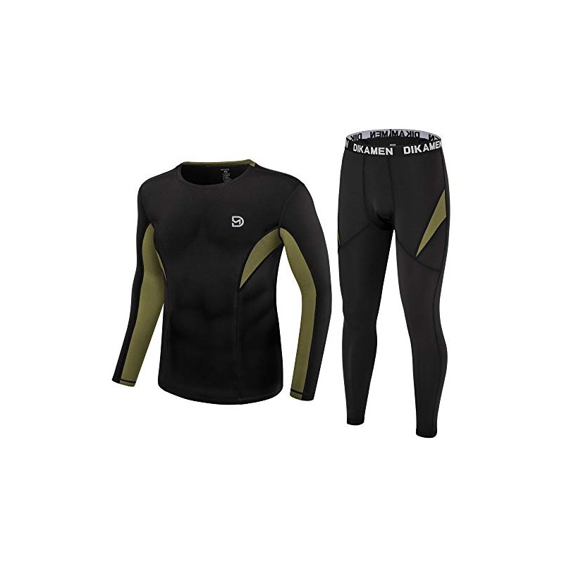 DIKAMEN Men's Thermal Underwear Fleece Lined Performance Fleece Tactical Sports Shapewear Thermal Set (Black02, Medium)