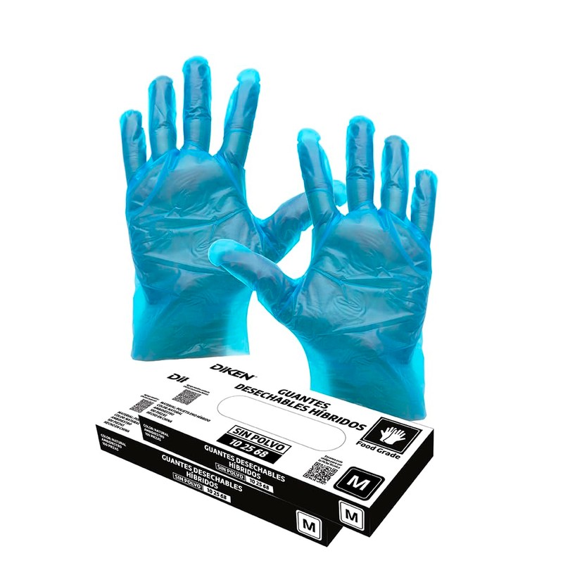 DIKEN 200 Guantes Híbridos - Grado Alimenticio - Color Azul, SIN Polvo, Guantes de Polímero Elástico TPE. (Grande)