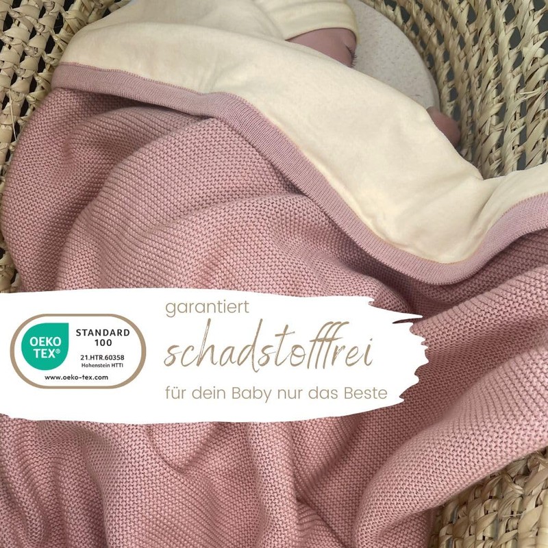 - Cosy winter blanket in high-quality Oeko-Tex quality: this baby blanket with thin border (75 x 100 cm) is not only a stylish accessory, but also a wonderfully warm companion for the winter months. With its cuddly soft knitted surface made from 100% pure organic cotton and a warm velvety underside made of velour (80% cotton / 20% polyester), it presents itself as a thickly padded winter blanket of the highest quality.