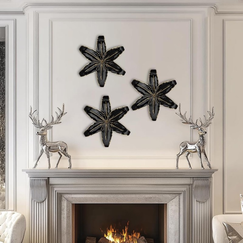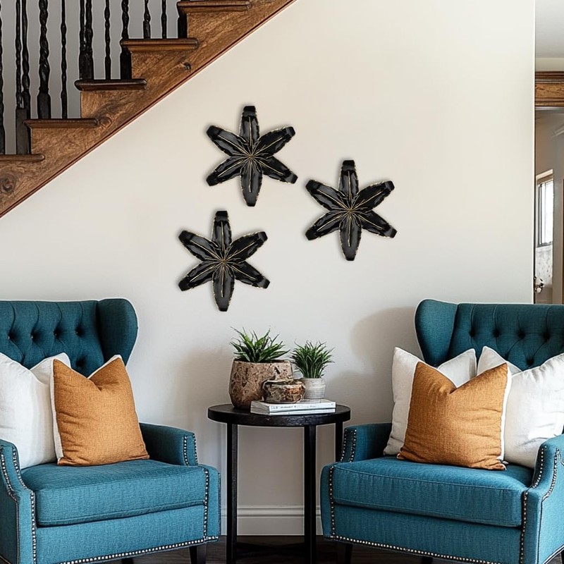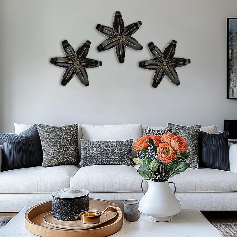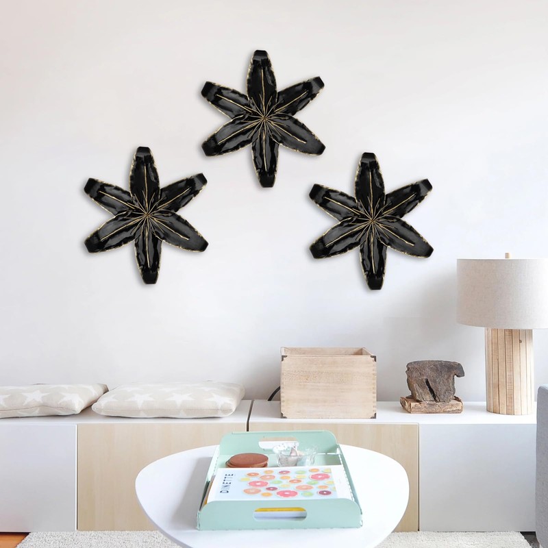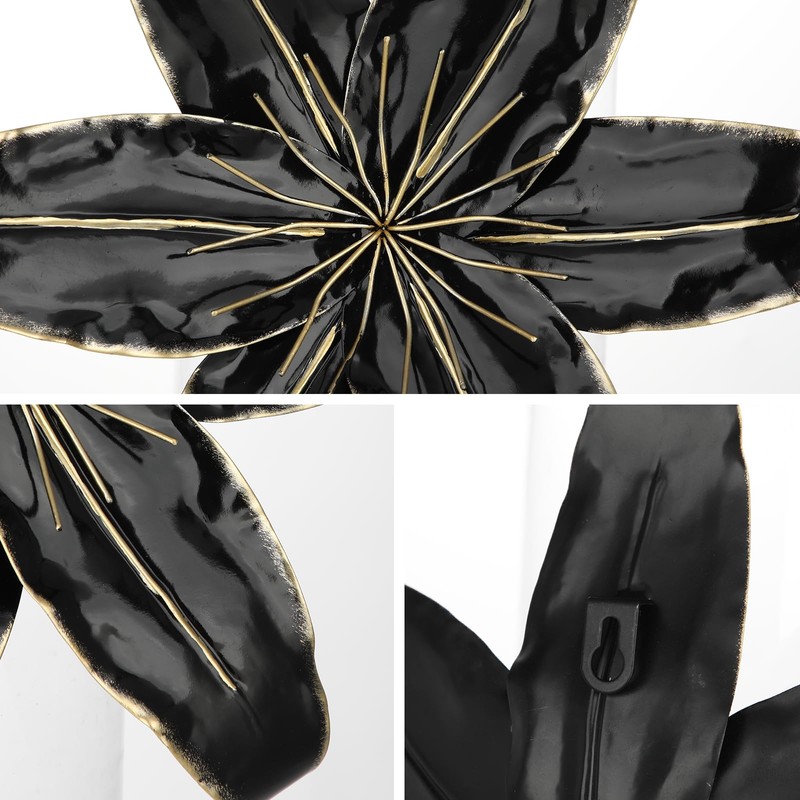 DILATATA 12" Black Wall Décor Pack of 3 Metal Tiger Lily Wall Art