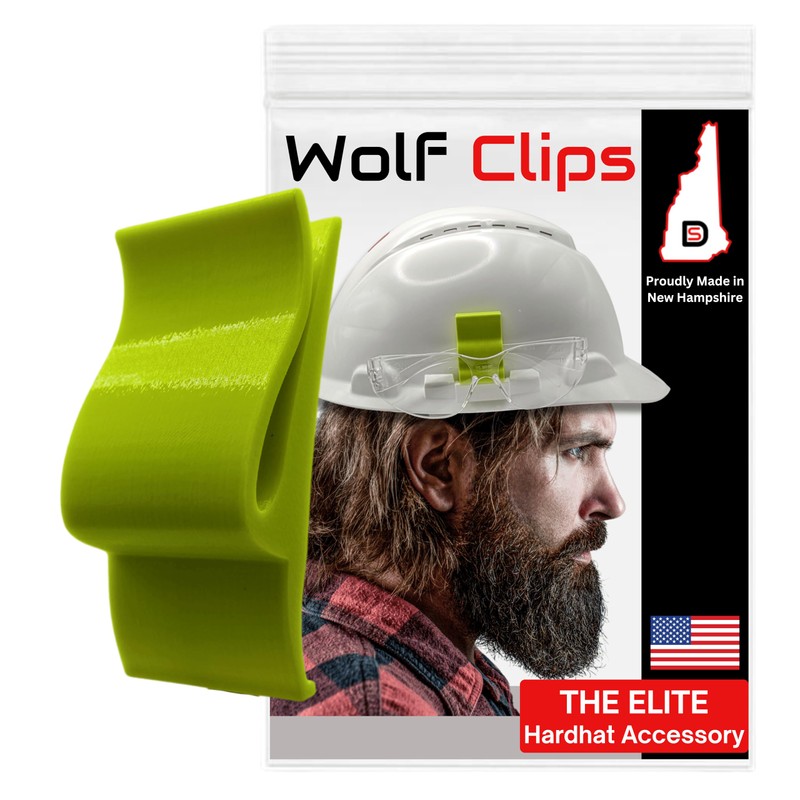 Diligence, Wolf Clips, Hard Hat Accessory, Safety Glasses or Sunglasses Holder, Hi-Vis Fluorescent