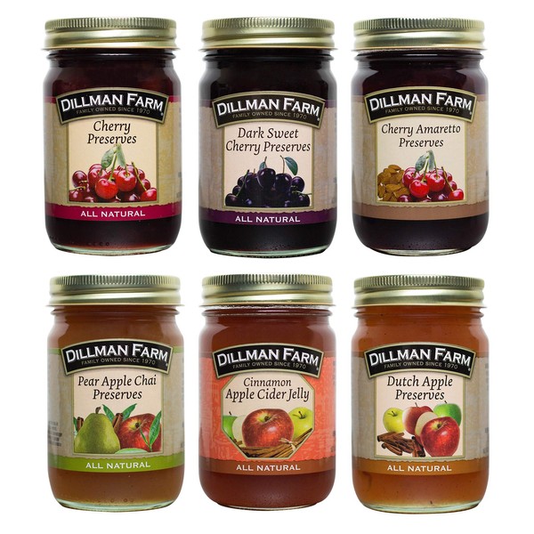 • This unique variety pack features our delicious Cherry Preserves, Dark Sweet Cherry Preserves, Cherry Amaretto Preserves, Pear Apple Chai Preserves, Cinnamon Apple Cider Jelly and Dutch Apple Preserves.