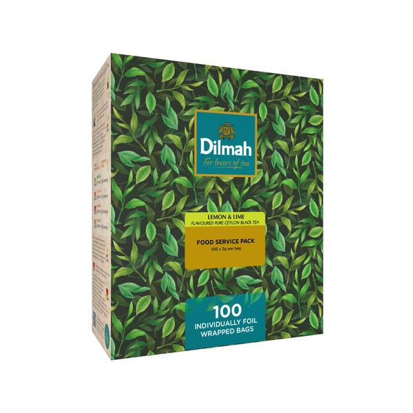 Dilmah Lemon & Lime Flavoured Pure Ceylon Black Tea - Caja con 100 piezas