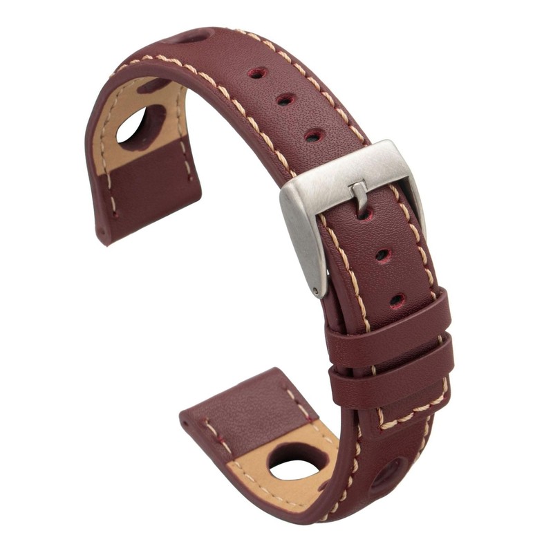 diloy Calf leather rally racing perforated strap – Sport design for watch – Sizes 20mm 22mm 24mm – Black brown burgundy or navy blue P355 Burgundy 20mm