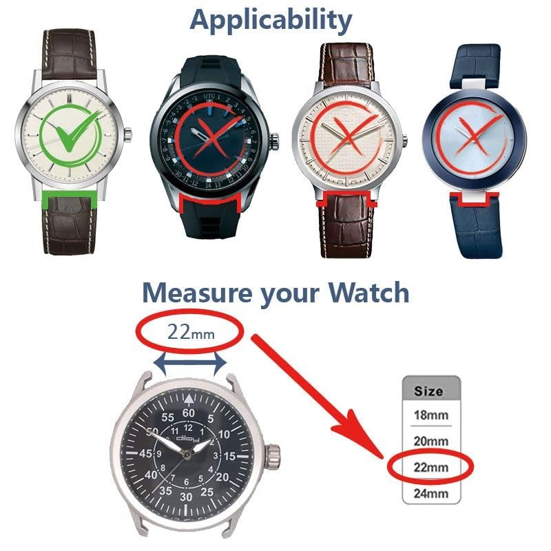 - Dimensions and compatibility: the size of this leather watch strap is measured in millimetres (mm) and corresponds to the width at the connection to the watch. Compatible with straight bridge watches, this special length (XL) model is ideal for stronger wrists. Includes tools for easy and quick installation. Buy this ribbon if you have had problems with standard lengths. Comfortable design for larger sizes.