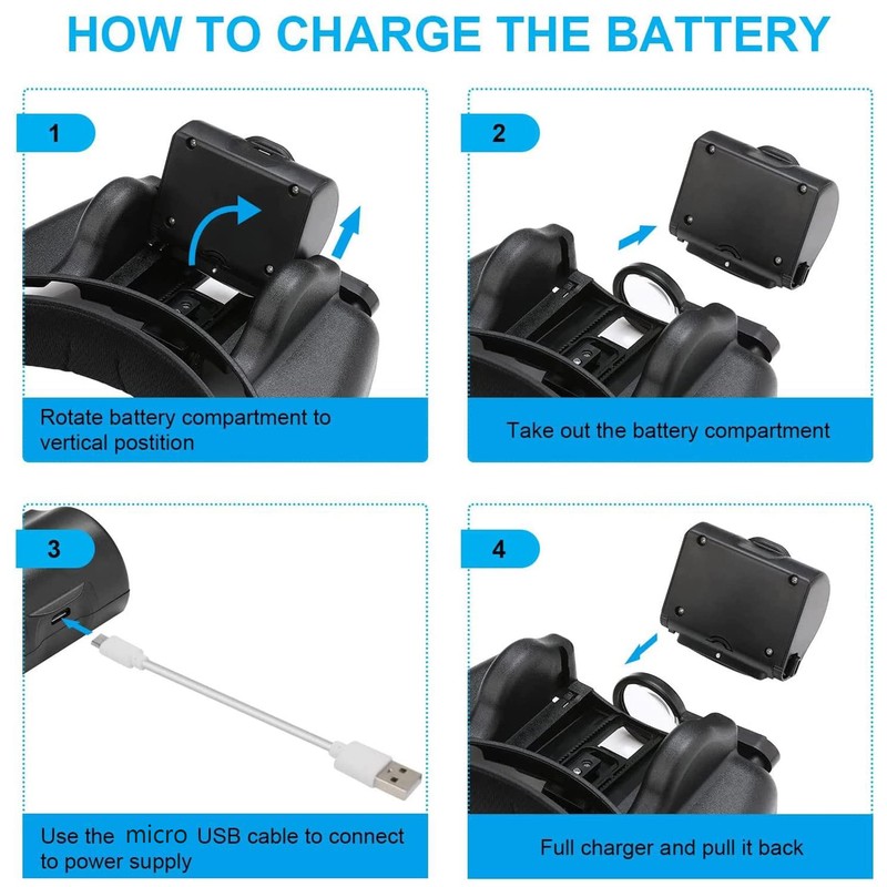 - RECHARGEABLE & ADJUSTABLE LED LIGHT: Our headband magnifier with 3 led lights has the function of detachable and adjusting the direction of illumination. When using, you can adjust the illumination direction of led for more precise illuminating angle to meet your need. Also, you can remove the battery to charge. It takes 1.5 hours to fully charge through USB cable. Fully-charged battery can make LED light last continuously for 4-8 hours.