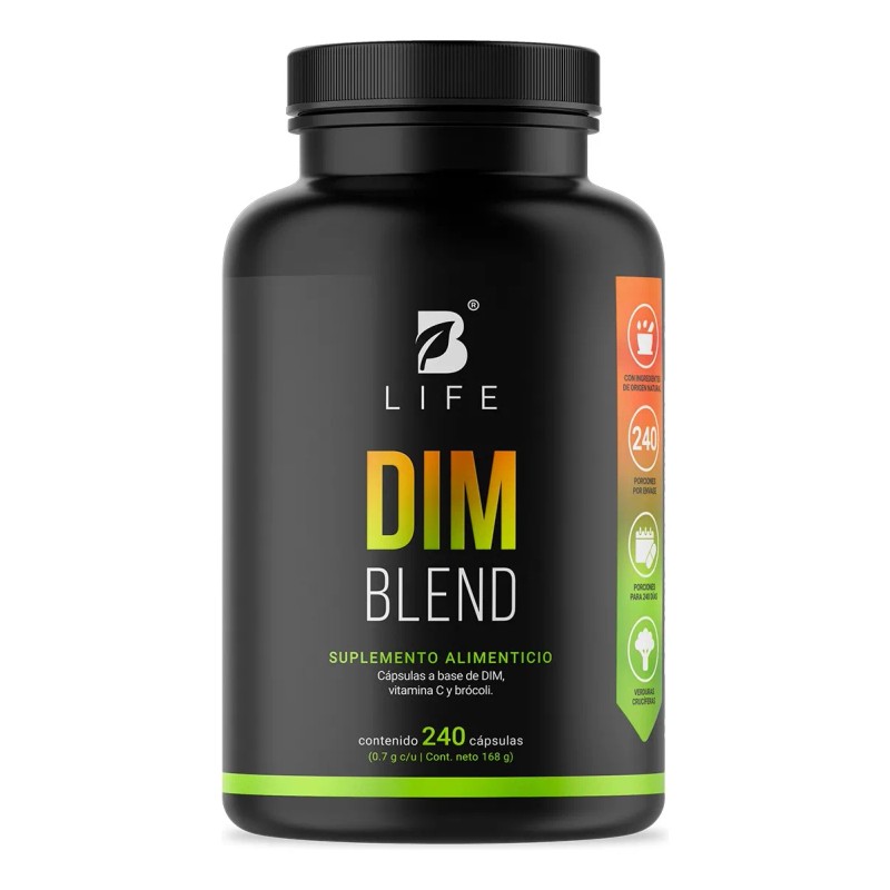 DIM Blend de B-Life es un suplemento avanzado que combina 300mg de DIM, Vitamina C y extracto de brócoli, diseñado para equilibrar los niveles hormonales, favorecer la desintoxicación natural del cuerpo y mejorar el bienestar general.