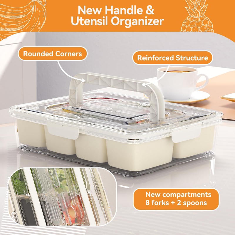 Dimber Snackle Box Container, Divided Serving Tray with Lid and Handle, Adding Cutlery Organizer, 8 Fruit Forks, 2 Spoons, Snackle Box for Sports Events, Candy, Fruits, Snacks,Salad Bar(1-Pack)