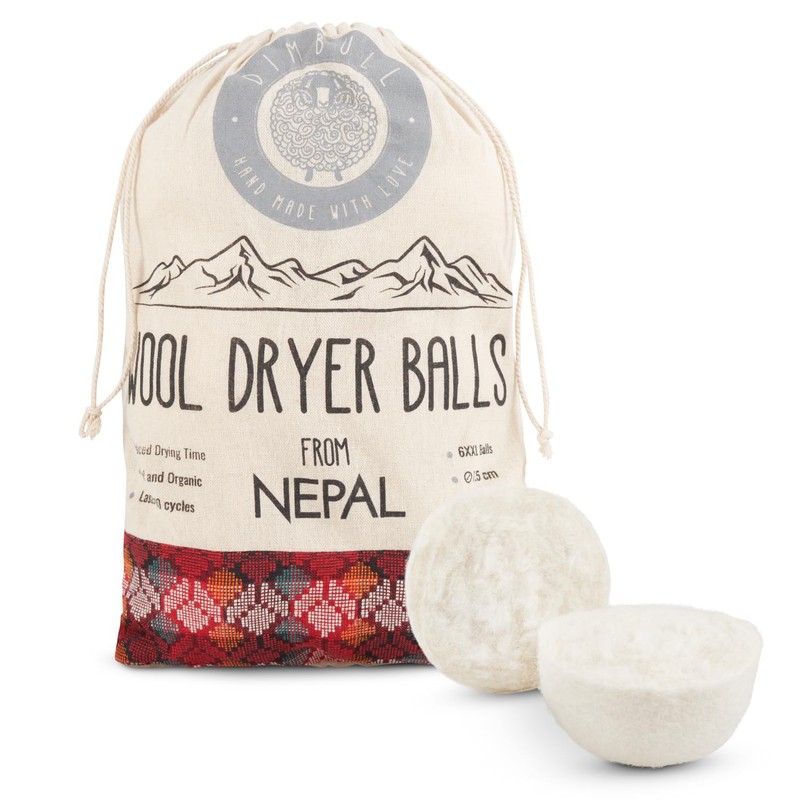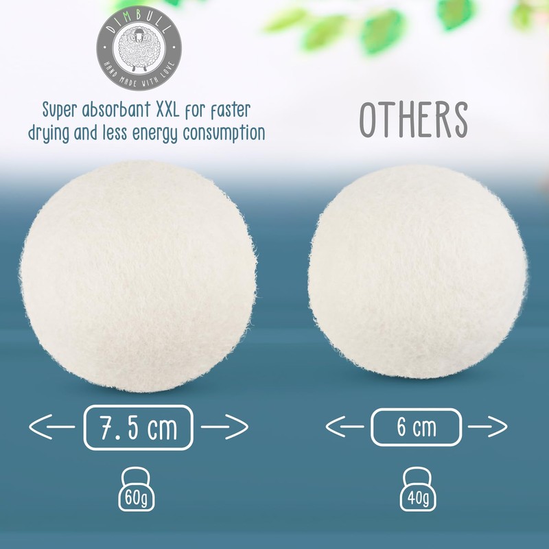 DimBull Wool Tumble Dryer Balls for Laundry - 6 XXL Organic Merino Sheep Wool Dryer Balls Handmade in Nepal | Reusable Fabric Softening Drying Balls for Tumble Dryer Reduces Drying Time | 7.5cm, 60g.