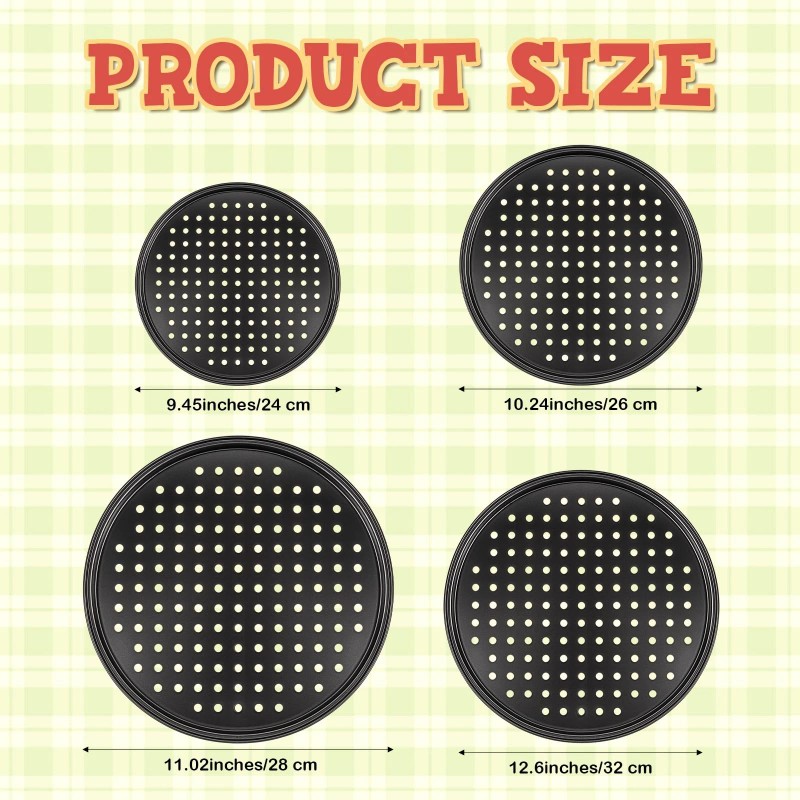 4-Piece Pizza Tray Set Pizza Pan With Holes, Non-Stick Pizza Baking Pan for Oven, Carbon Steel Round Baking Sheet Baking Supplies for Home Kitchen Crispy Evenly Baked Pizzas 9/10/11/12 Inch