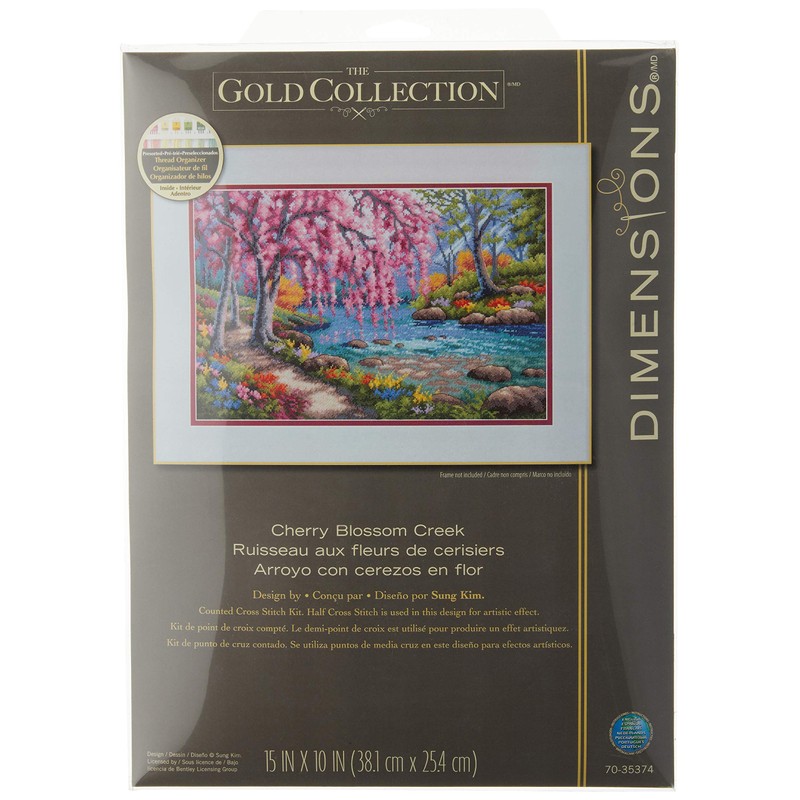 - This cross stitch Kit lets you create a beautiful array of vibrant cherry blossoms that dangle over a serene Creek in a secluded forest.