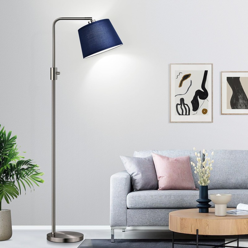Dimmable Floor Lamp, 1000 Lumens LED Edison Bulb Included, Brushed Nickel Arc Standing Tall Floor Lamp with Blue Shade for Living Room Bedroom Office Dining Room
