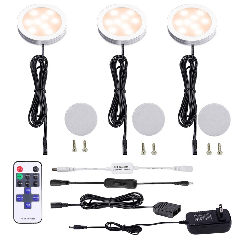 Dimmable LED Under Cabinet Puck Lights AIBOO 3 Lamps Kit with RF Remote Control for Home Kitchen Counter Lighting (Warm White 2700K)