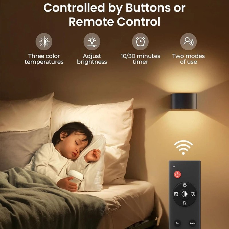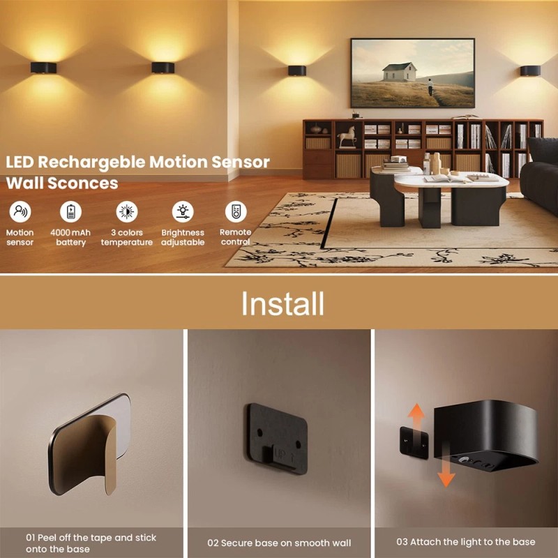 Dimmable Wireless Wall Sconces Set of 2, Rechargeable, 3 Temp, Indoor Decor
