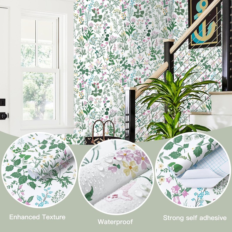 • [SIZE]-L19.69xW1.44ft/236.2inx17.3in, covers 28.42 sq.ft [COLOR] -White [MATERIAL] -Vinyl [WATERPROOF]-Easy to clean [VINTAGE FLORAL PRINTED WALLPAPER] The new thick wallpaper has been upgraded on the basis of the original process, not only upgrading the product quality, but also focusing on improving the product effect. We are not only professional in color, but also in quality