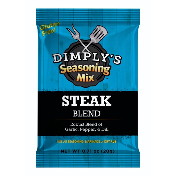 Dimply's Steak Seasoning Mix – 12 Pack, Single Serve Dry Rub and Marinade – Garlic Pepper Dill Blend for Meat, Chicken, Tofu, and Vegetables – Vegan, Gluten Free, No MSG, Preservative Free