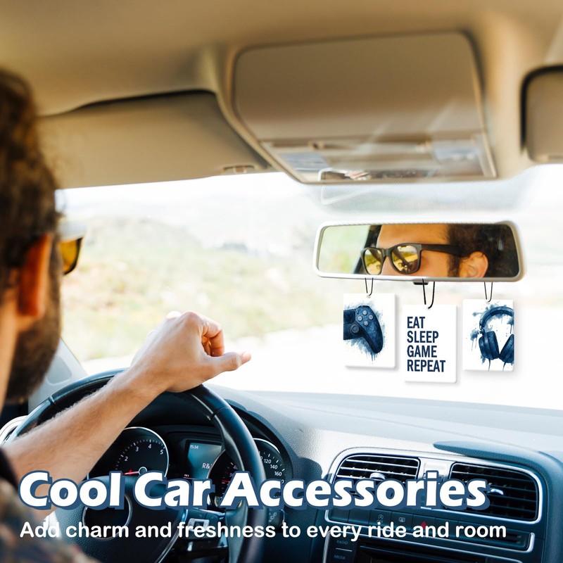 Dimurela Eat Sleep Game Repeat Car Air Freshener Accessories 3pcs, Gaming Hanging Air Fresheners Decor for Teen Boys Closet Playroom, Blue Car Scent Fragrance Card Gifts for Gamer Men Drawer