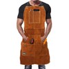 DIMWELD Welding Apron, Heavy Duty Workshop Apron for Welders and Blacksmiths, 6 Pockets, Light Brown, Cowhide Leather, One Size