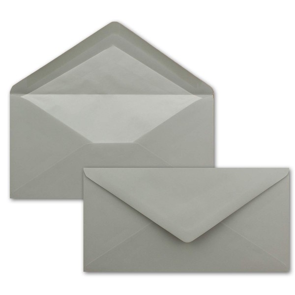 - Colour: light grey – lining: white – grammage: 80 g/m² – dyed paper with matte surface make your letters or invitations for weddings or birthdays a real eye-catcher