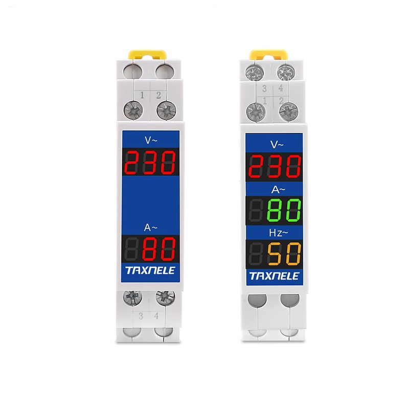 DIN Rail 18 mm Voltage Current HZ Meter AC 80-500V 110V 220V 380V 100A Modular Voltmeter Ammeter LED Indicator Digital Volt Tester with CT (V+A)