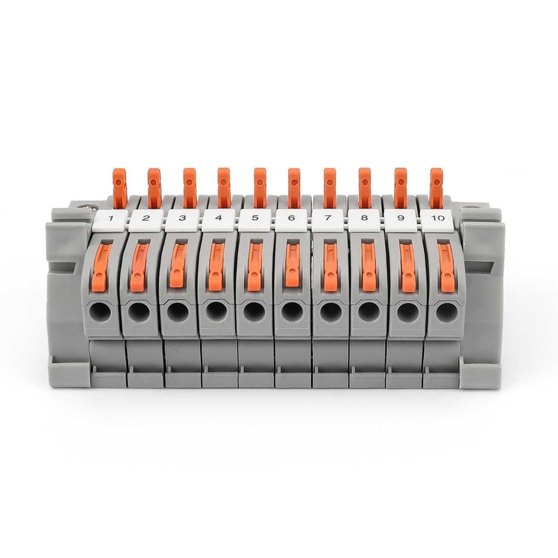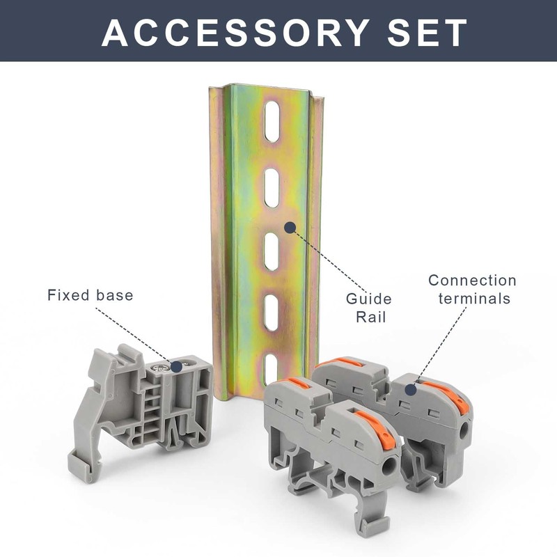 - Complete accessories: connection terminals you will receive 10 terminal sets, 10 screws, 1 row short circuit, 1 10 cm rail, 1 number marking strip, 2 fixed bases
