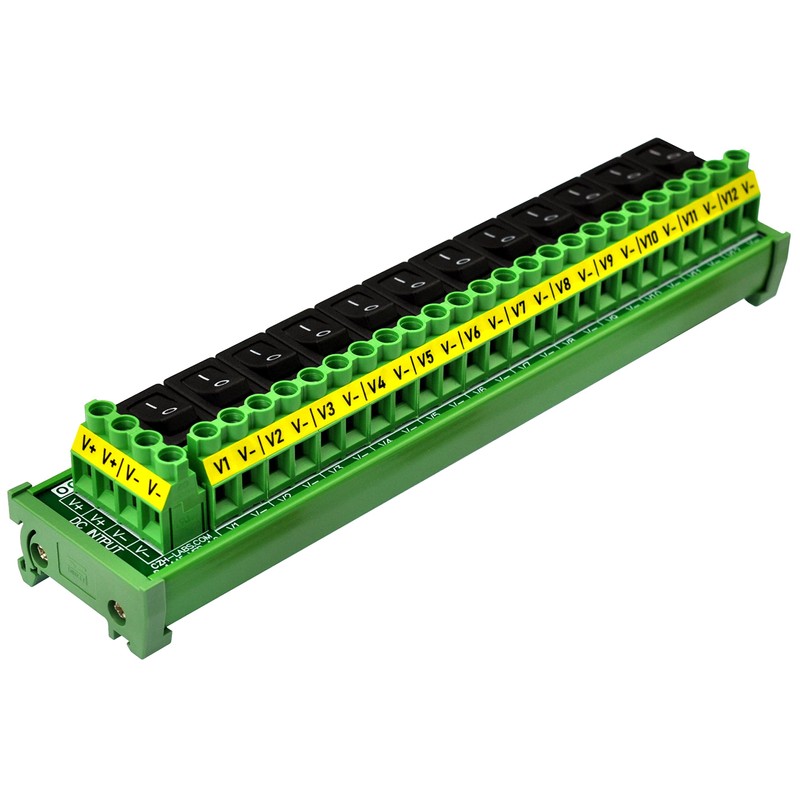 DIN Rail Mount 12 Channel Rocker Switch DC Power Distribution Strip Module