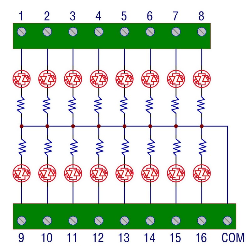 DIN Rail Mount 16 LEDs Indicator Light Module, Support 5~50VDC Common Positive/Negative (Yellow)