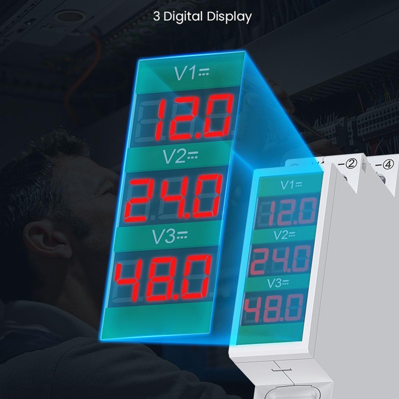 DIN Rail Voltmeter 3 Digits DC 11V to 310V Voltage Range Voltage Meter LCD Display with Switch Output Function Isolated Triple Way Modular Electrical Instrument