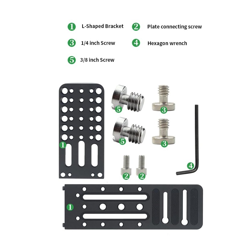 DINESK L-Shaped Bracket Quick Release Plate 3/8 1/4In Screw Mount for 4K DSLR ILDC Camera Video for Canon Nikon ARRI Mini Tripod