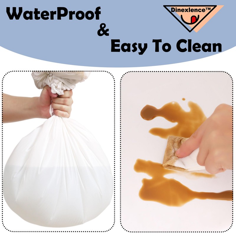 - ⭐ **WATERPROOF & EASY CLEANUP** Experience the worry-free dining with our waterproof plastic tablecloths. Let spills become a thing of the past as the waterproof assurance ensures your table remains clean, even if the stain is hard to clean, just pack it up and throw it away. Say goodbye to scrubbing and welcome the magic of easy cleanup after every meal or event.