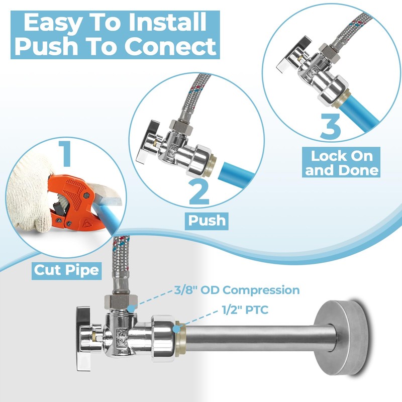 - Easy To Install: Push to connect pex shut off valves without special tools, crimping, glue, or soldering needed, just push and lock the pipe. It is ideal for working in confined spaces and can be easily removed using disconnect clips