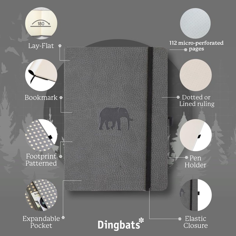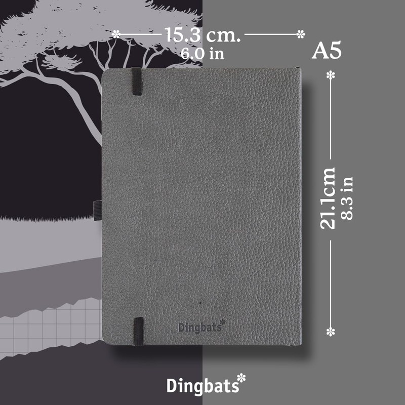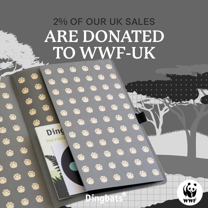 • SUSTAINABLY SOURCED, ENVIRONMENTALLY CONSCIOUS: Join us in our commitment to sustainability. Crafted from recyclable materials and FSC certified paper, our notebooks are a sustainable option and proudly Vegan Certified. Additionally, for its UK sales, Dingbats* Notebooks Ltd donates 2% of its revenue to WWF-UK, a charity registered in England and Wales (1081247).