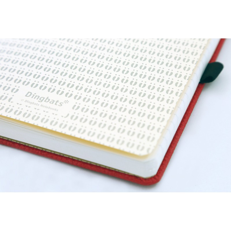 - A5 notebook with many functions: Dingbats notebooks exude quality - this hardcover leather notebook is made of vegan PU leather, micro-perforated cream 100gsm pages, an elastic closure and a pen holder. The notebook is equipped with an animal footprint at the end of the pages and an inner pocket for added detail. It is the perfect gift for your loved ones.