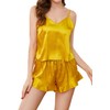 DingCo Silk Pajamas for Women Camisole Sleepwear ruffle pajama shorts Satin Pajama Set 2 Piece Silk Pjs Gold