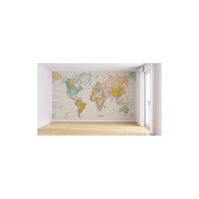 Dingdanbao Dingdanbao World Map Wallpaper, Geographical Topics 3D Mural, Self Adhesive Removable Peel Stick Murals, Large Waterproof Wallpaper for Living Room Bedroom Playroom Wall Decors 79" Wx55 L-PVC